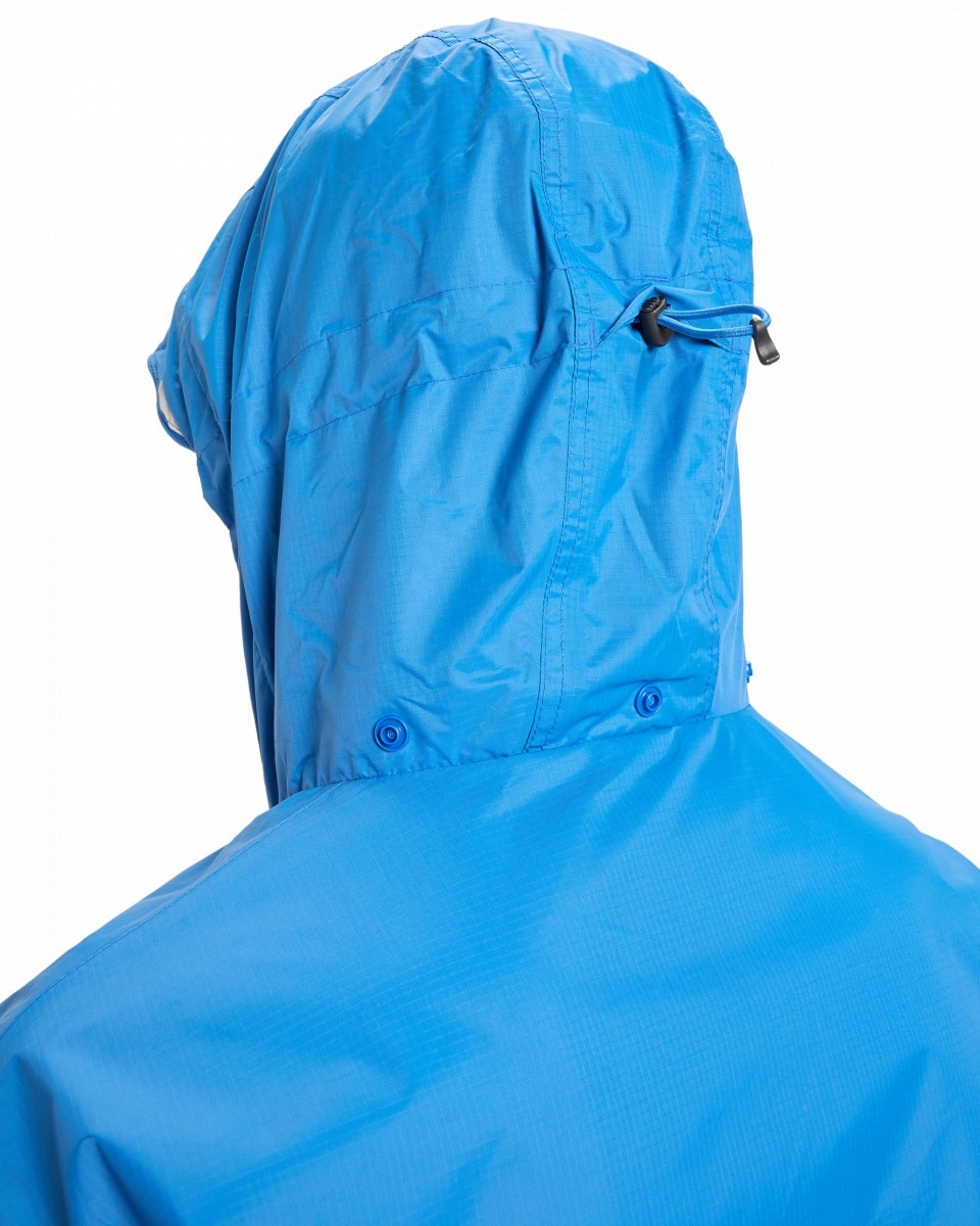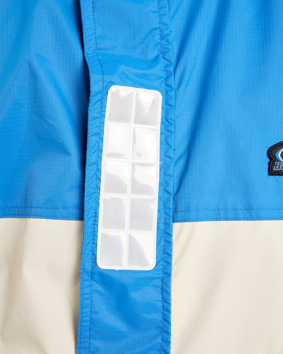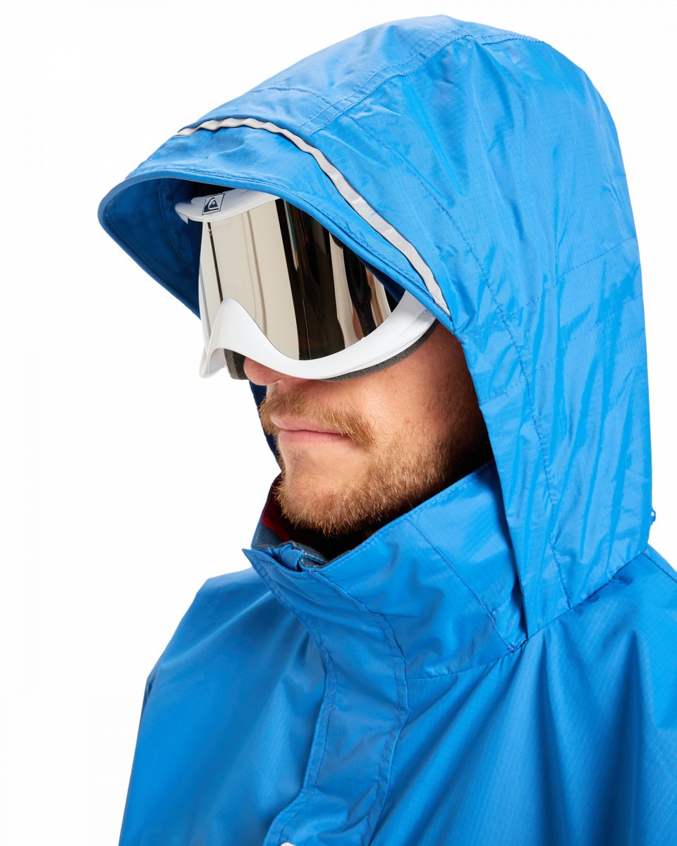 - Капюшон со светоотражающей отделкой можно надевать поверх шлема, а также компактно свернуть и убрать в собственный воротник