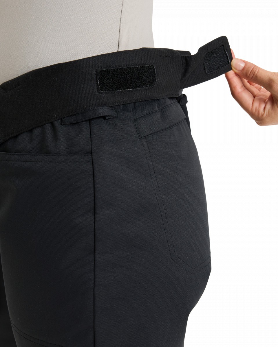 - Штанины с гейтерами из тафты для натягивания на ботинок и на кулисках для предотвращения износа